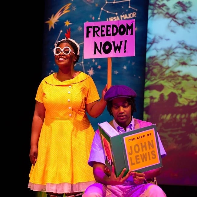 A new musical showcasing how the Civil Rights movement’s heroes inspired young John Lewis to protest injustice and get into “good trouble.” We’ll meet Jayden, who thinks he has nothing to learn from history while he’s stuck in detention with a book about Congressman John Lewis. Together we travel back in time on a musical journey through the decades with young John Lewis. Young John, who dreams of being a preacher, doesn’t have a congregation yet, but a loyal group of singing chickens that listen to him as he finds his voice. On a harrowing road trip through the South, John’s eyes and mind are opened to the injustices of segregation and racism, inspiring him to take action. As John meets Rosa Parks and Dr. Martin Luther King, Jr., and ultimately becomes a leader and American hero himself, Jayden learns how he can be become a leader, too.
